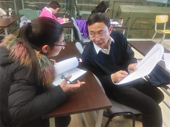学术沙龙期间杨同军、王晶两位老师对同学们论文中存在问题做了细心指导和解答。