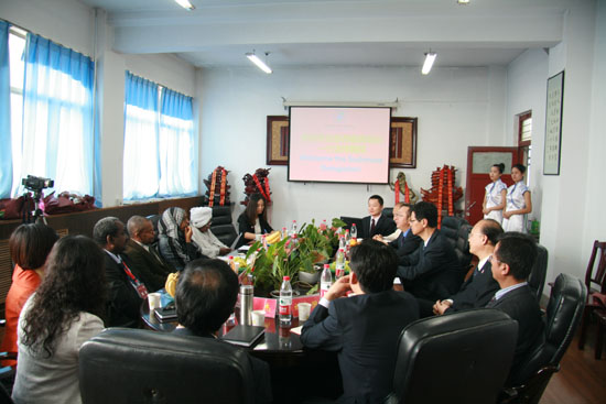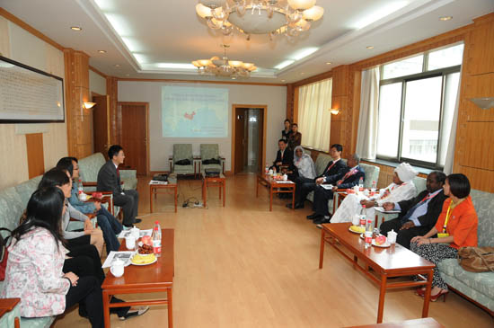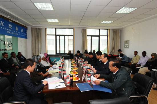 在我院考察时,双方就喀土穆大学中文系学生来我校学习和我校汉语国际教育专业硕士研究生赴喀土穆大学教学实习及苏丹本土汉语教师培训、中文教材开发、远程课程建设等方面事宜进行了会谈,并达成初步合作意向。苏丹教育部代表团团长SOUAD ABDELRAZIG MOHAMMED SAEED博士强调,苏丹喀土穆大学和我校在汉语教育方面已经具备良好的合作基础,苏丹教育部将积极推进各级学校的汉语教育。刘仲奎副校长在交谈中指出,我校与苏丹在汉语教育方面取得了丰硕成果,今后将进一步拓展与苏丹教育部及苏丹喀土穆大学在汉语教育方面的交流与合作。会谈后,SOUAD ABDELRAZIG MOHAMMED SAEED团长一行与我院苏丹留学生进行了座谈。