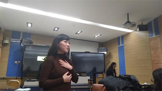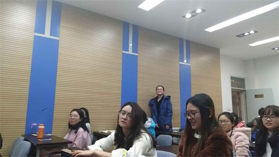 赴泰志愿者马榕就志愿者选拔备考、报名、面试、培训、派出等方面加以简单介绍。她介绍了国家汉办汉语教师志愿者面试的三个部分,分别为汉语水平及综合能力测试、外语测试和心理测试,其中综合能力测试又可细分为自我介绍、近义词辨析、才艺展示等;培训方面,马榕强调汉办志愿者培训有三大特点,即高强度、短时间、高效率,所以需要全身心的投入,努力夯实基础和提高教学技能。赵沐岩向大家推荐了《跨文化交际》(胡文仲著)等备考书目以及在赴任前需要准备的各项材料。杨柳青与大家分享了她在面试和培训过程中遇到的考题及应对措施和在韩国任期内的教学经验,并且勉励大家以沉着冷静、积极乐观的态度面对遇到的困难。