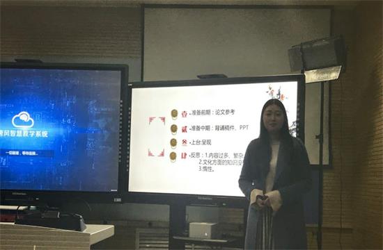 韩玉蓉,2016级汉语国际教育硕士研究生,2017年研究生国家奖学金获得者。她介绍了自己在校期间担任研究生会干部,努力为学院学生做好服务工作及积极参加各类活动,在校期间获得多项奖励的情况,重点分享了参加全国“汉教英雄会”的经历并给予同学们“明确目标,高效学习”的建议。