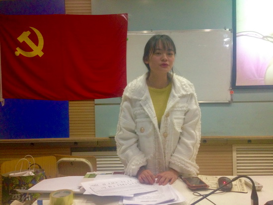 程洋强调了作为学生党员、青年团员,要深入学习,把握实质,真正领会习近平总书记系列重要讲话的精神内核;要结合学生工作,将领悟的精神贯彻落实到行动中去,不忘初心;要矢志不渝,拼搏奉献,树立与时代同心同向的理想信念。
