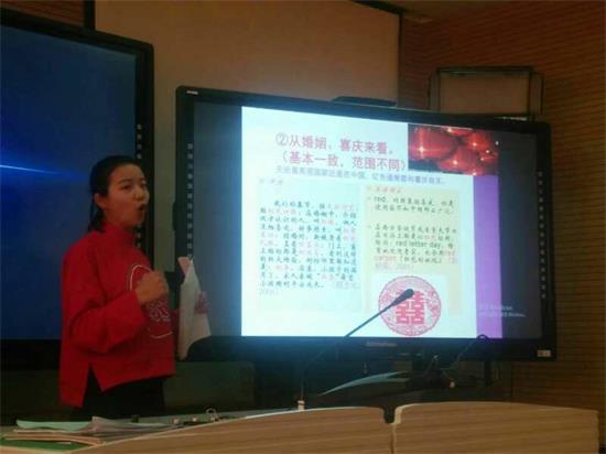 学术汇报会上,2017级汉硕田益做了《<颜色与文化>——以“红”为例》的报告,分别从中西方对待“红”的异同点;“红”在中国的特殊意义以及中国“尚红”的历史追溯介绍了颜色与文化的丰富涵义。