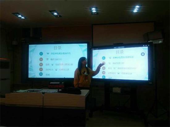 《动态助词“着”与对外汉语教学》的报告中,2017级汉硕郭雨从“着”的基本性质及语法作用;“着”的偏误现象分析;造成“着”的偏误现象的原因分析以及动态助词“着”的教学方法几个方面对助词“着”的用法及教学做了详细的阐述。