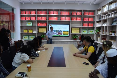 帮扶工作队的两位干部带领大家参观了扶贫车间,详细介绍了农产品的生产流程。扶贫车间设有产品展厅、花椒加工车间、油菜籽加工车间、蜂蜜加工车间、预留生产车间、库房等,这里出产蒲陈味道:“麻“辣”“香”“甜”。“麻”指花椒,花椒生产车间结合机器流水线作业与人工筛选双重把关,机器流水线提高产品质量,人工筛选为村民提供了就业岗位,增加其收入。经过两次筛选后的花椒,香味浓郁、颗粒饱满;“辣”为辣椒——爽口而韵味悠长,是蒲陈村最近几年才发展起来的产业,其辣椒育苗产业规模可为周围乡镇提供辣椒幼苗;“香”为菜籽油,利用周边农民生产的油菜籽、生产出纯天然的浓香菜籽油;“甜”指的是土蜂蜜,当地蜜蜂采百花蜜,所产的蜜色泽清透,口感香甜。该扶贫车间投入使用以来,平均年产量达到日加工油菜籽近2000斤,总共带动190户建档立卡贫困户发展增收。